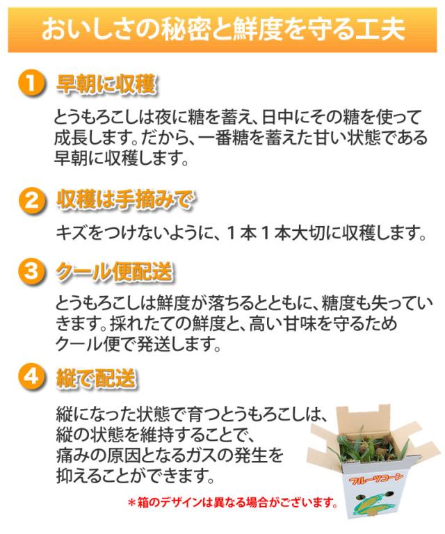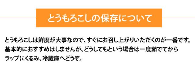 とうもろこしは鮮度が大事なので、すぐにお召し上がりいただくのが一番です。