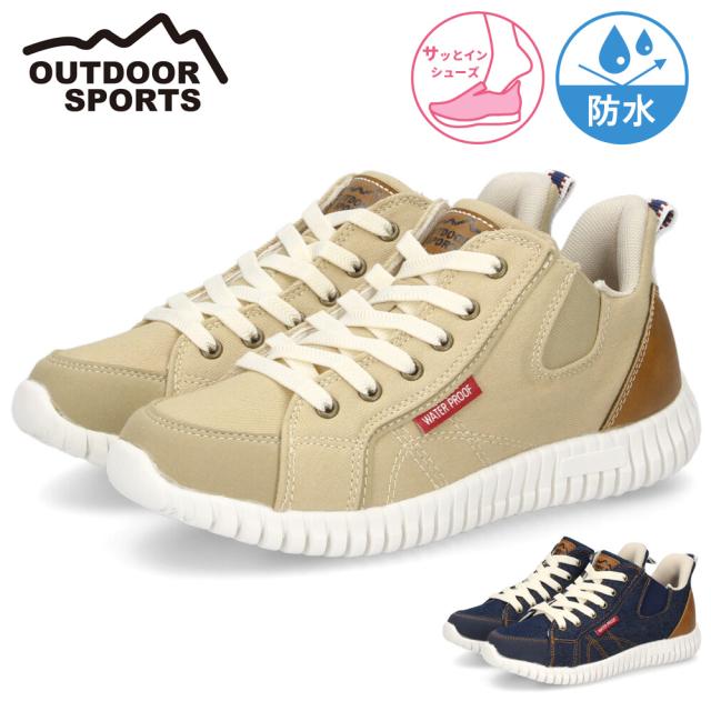 スリッポン レディース スニーカー 防水 立ったまま履ける 手を使わずに履ける ハンズフリー 靴 軽量 OUTDOOR SPORTS アウトドアスポーツ FKR-1111HFWP