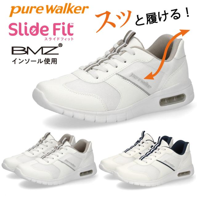 ピュアウォーカー レディース スニーカー PW0561 スライドフィット ハンズフリー オフィス ナースシューズ 仕事履き 普段履き スリッポン 軽量 エアークッション pure walker