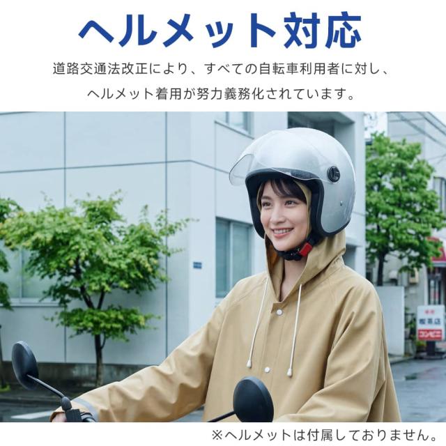 収納式フードと着脱式バイザーで雨天時も安全・快適。裏地はメッシュ仕様で蒸れにくい設計。