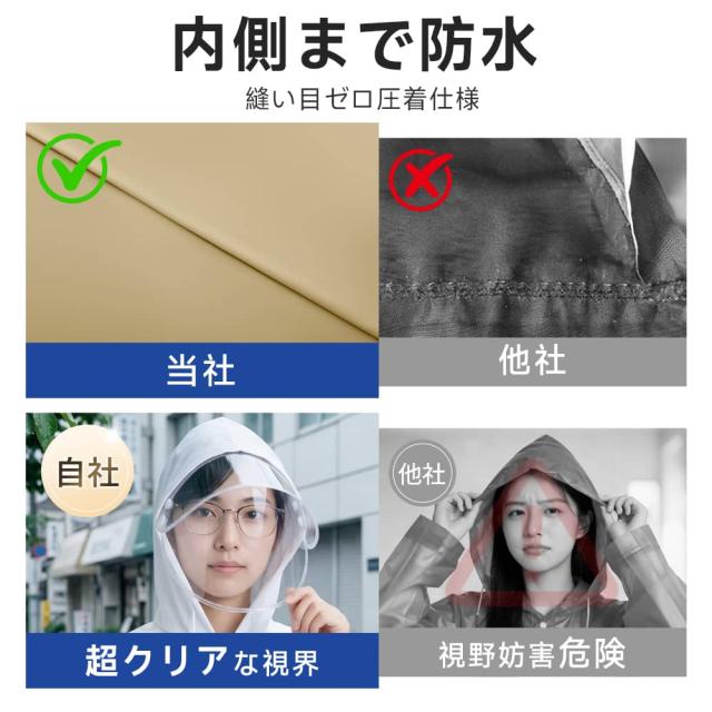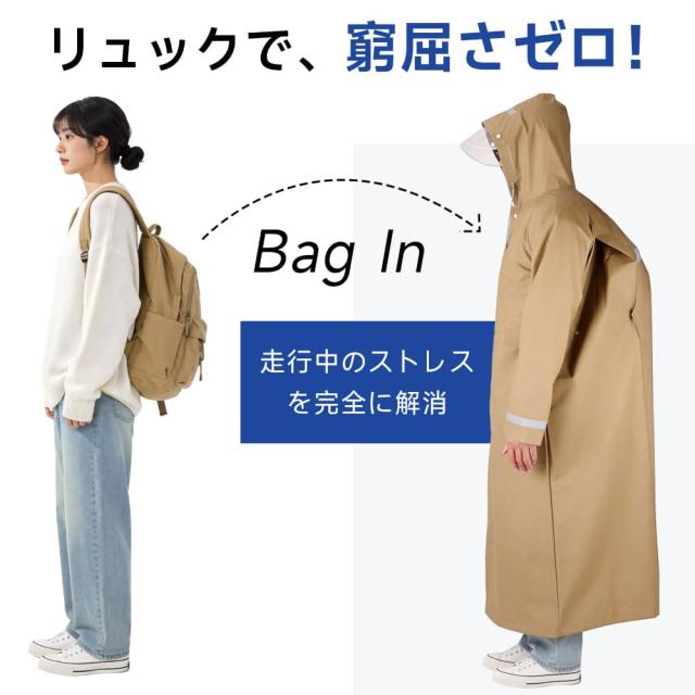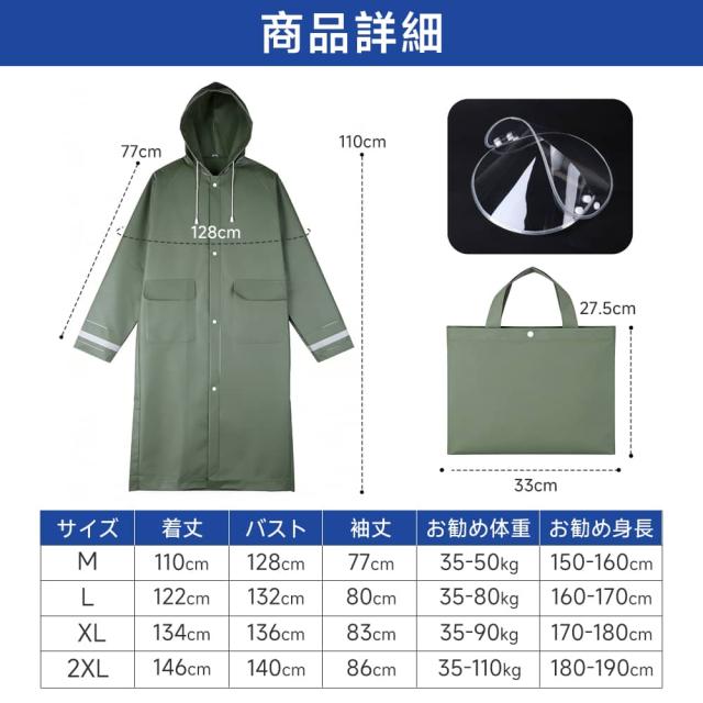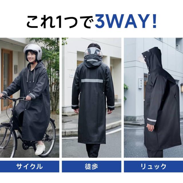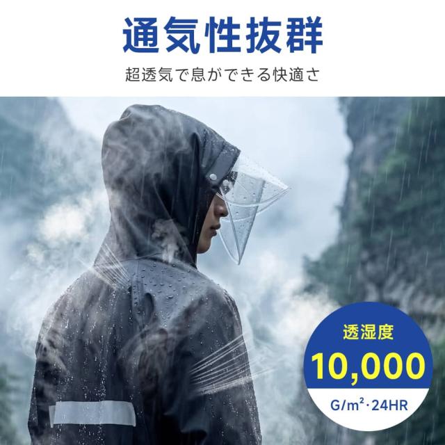 レインコート 自転車 リュック対応 レインウェア メンズ レディース 通勤 通学 ロング丈 二重バイザー 透明つば 防水 防風 軽量 大きめサイズ ゆったり設計 裏メッシュ 蒸れにくい 反射テープ付き 夜間安全 撥水加工 雨具 梅雨対策 アウトドア 通学用 通勤用 男女兼用