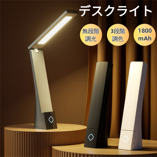 送料無料 デスクライト LED 充電式 1800mAh 無段階調光 3段階調色 コードレス 折りたたみ 卓上照明 学習机 ベッドサイド テレワーク 目に優しい 省エネ 持ち運び便利