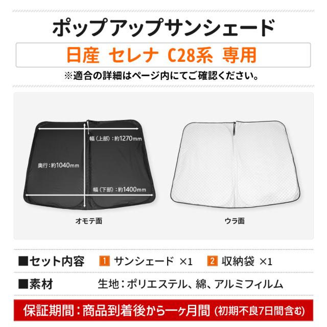 [只今タイムセール開催中][予約] C28系 セレナ 専用 ポップアップサンシェード SERENA フロント用 UVカット 日除け 遮光 車用 収納ケース付き 車中泊にも最適 送料無料 ニッサン NISSAN [7]A