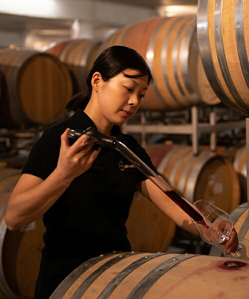 ベルンハルト・コッホは、ドイツ・ファルツ地方ハインフェルド村の家族経営のワイナリーです。ドイツを代表するワインガイド『VINUM』の2024年版では、4星評価を獲得、特に優れたピノ・ノワールを生産することが評価され、同誌において、赤ワイン生産者の年間最優秀賞である「Roter Riese(Red Giant=直訳で赤色巨星あるいは赤の巨人)」を受賞しました。こちら醸造責任者を務める、坂田千枝さんの名を冠した、日本市場のために仕込んだ特別なワインです。新樽比率や風味を何度も調整した複数のサンプルを用意して頂き、試飲を繰り返して、ついに「これだ!」と、納得出来るキュヴェを瓶詰めしています。豊かな果実味に加えて複雑さ、優しく穏やかな酸、樽からの心地よい風味が、とてもバランスよく調和した素晴らしい味わいです。同価格帯やそれ以上の価格帯のワインを凌駕してしまうほどの仕上がりで、とても満足度の高い素晴らしい逸品です。