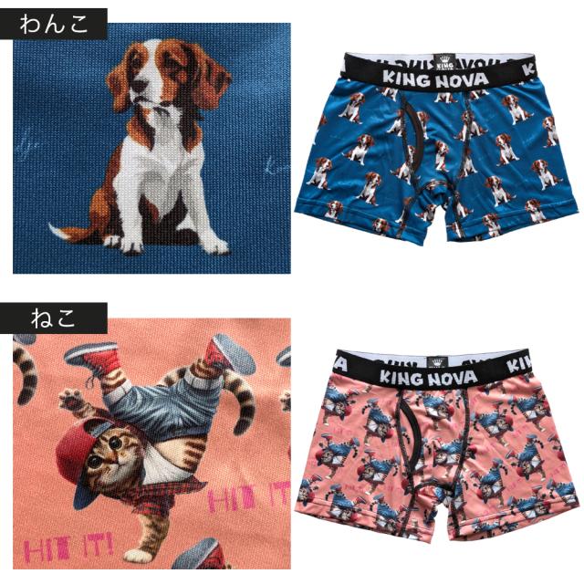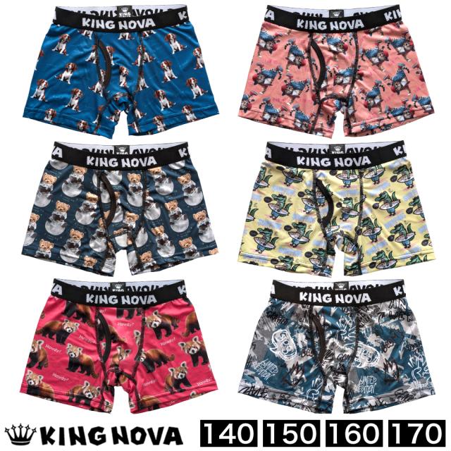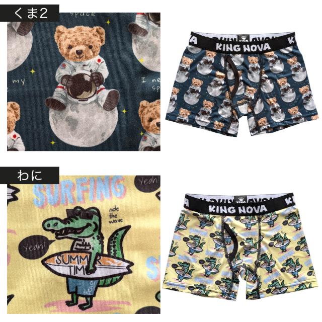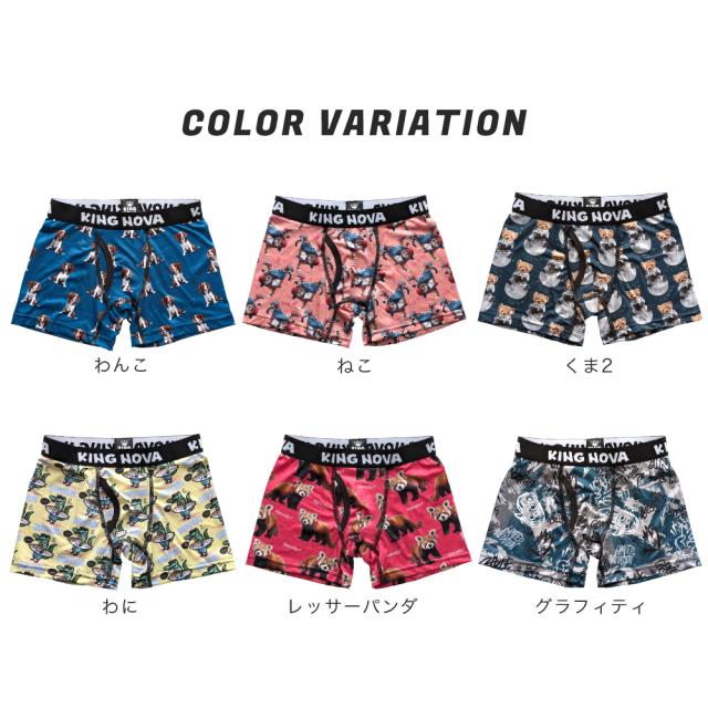 ボクサーパンツ キッズ ジュニア 前あき 子供 ティーンズ 下着 KING NOVA キングノバ ブランド アンダーウェア 下着 肌着 かっこいい おしゃれ 派手 ドライ 前開き 伸縮性抜群 快適 速乾 犬 ねこ くま プリント 小学生 高学年 中学生 高校生 140 150 160 170 / YU