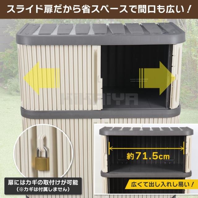 省スペースにたっぷり収納できる屋外用ミニロッカー ●外で使うさまざまな道具をまとめて収納できる屋外用物置 ●プラスチック製なので雨にぬれても錆びません ●扉はスライド式だから狭い所でも開閉が可能 間口も大きく、物の出し入れがし易い ●扉には鍵の取付けが可能(鍵は付属しません) ●背面には通気口があり、結露しにくい ●お客様での組立てが必要な商品です ※水が浸入しにくい構造にはなっていますが防水仕様ではありませんので、軒下などの屋根がある場所への設置をお勧めします 品番:PRT-2 |