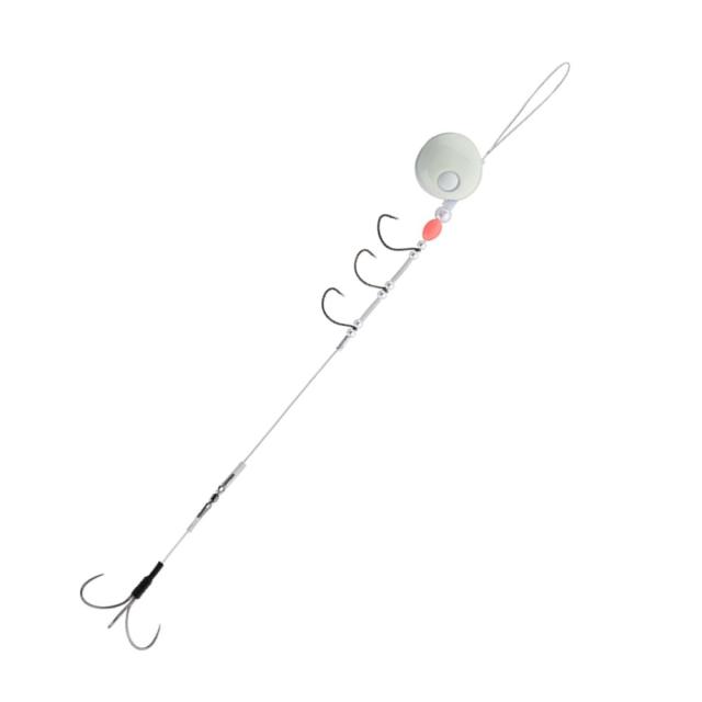 ジャッカル独自開発・設計の『直列チラシ三連』は、ブツ切りしたエビエサをチョン掛けするためのチラシ仕掛け。