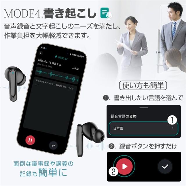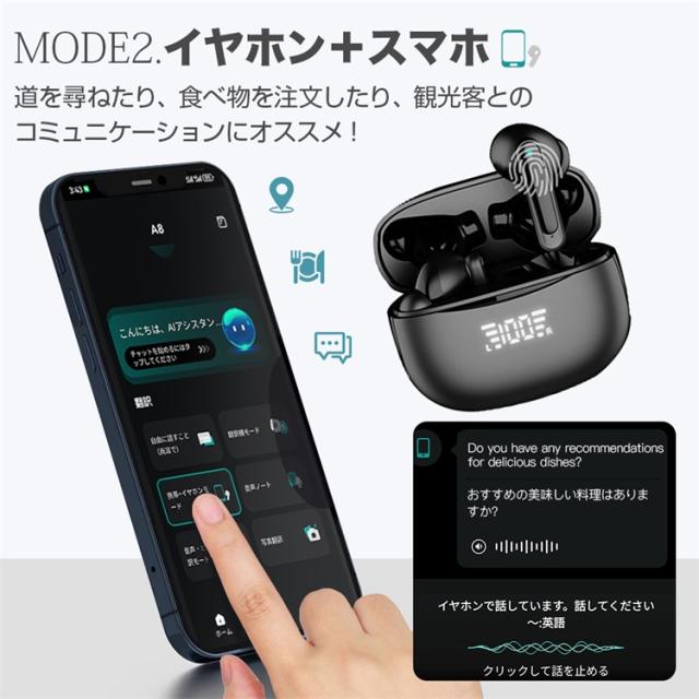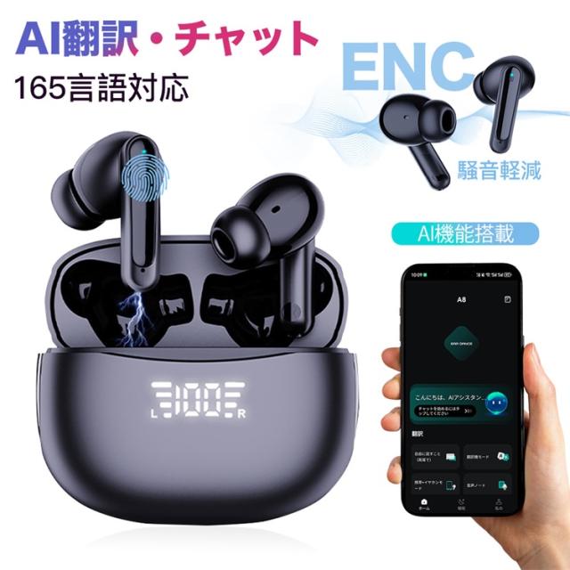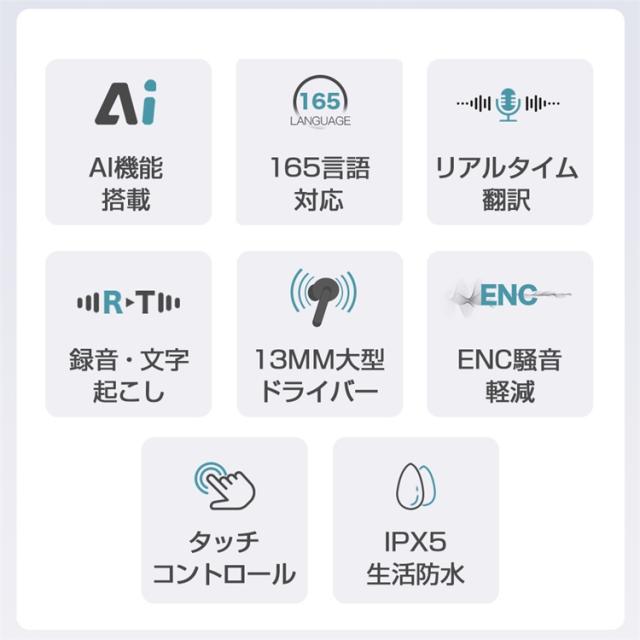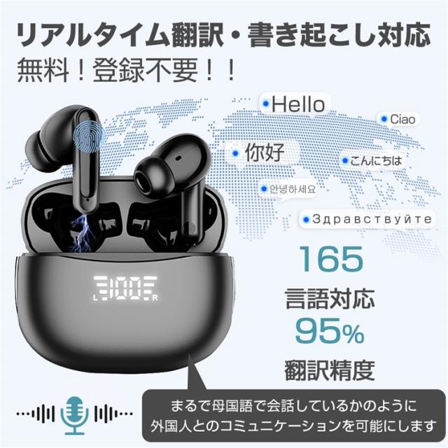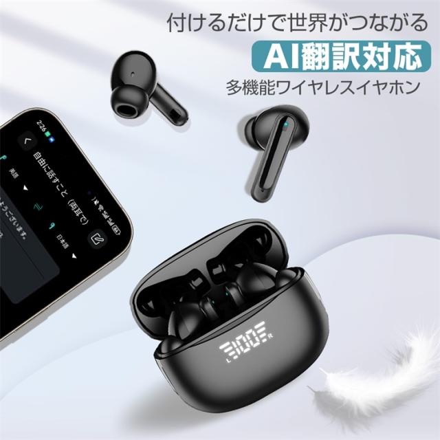 完全ワイヤレスイヤホン | 軽量3.8g・AIリアルタイム翻訳対応・Bluetooth5.3/低遅延・タッチ操作・片耳/両耳可・旅行/ビジネス/外国人対応・通勤通学・日本語説明書付き・ワイヤレスイヤホン