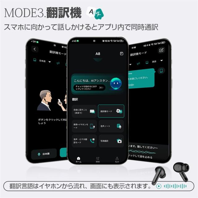 | 海外旅行 | ホテルチェックイン、レストランでの注文、現地の人との会話をリアルタイム翻訳 |
