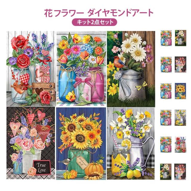 ダイヤモンドアート 刺繍キット 四角ビーズ セット 花 キット フラワー ビーズ 2点セット ダイヤモンドペインティング 5D DIY ビーズ絵画 初心者向け 壁飾り 手芸キット やり方簡単 趣味