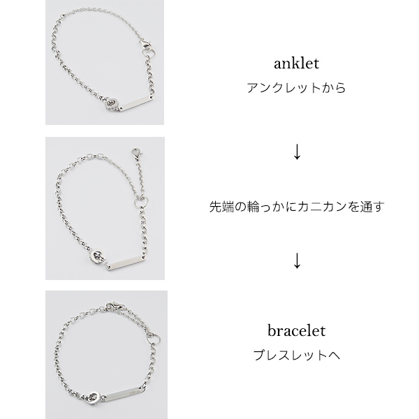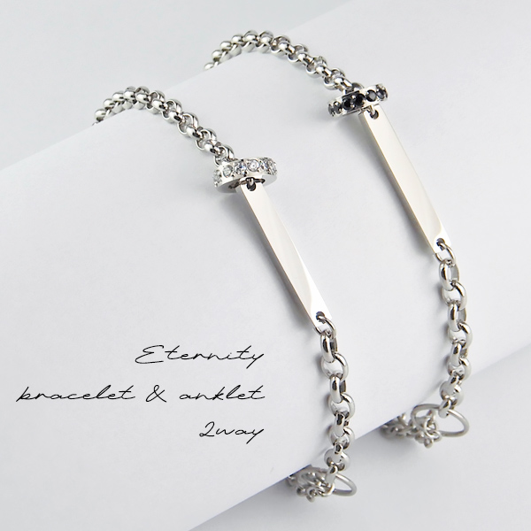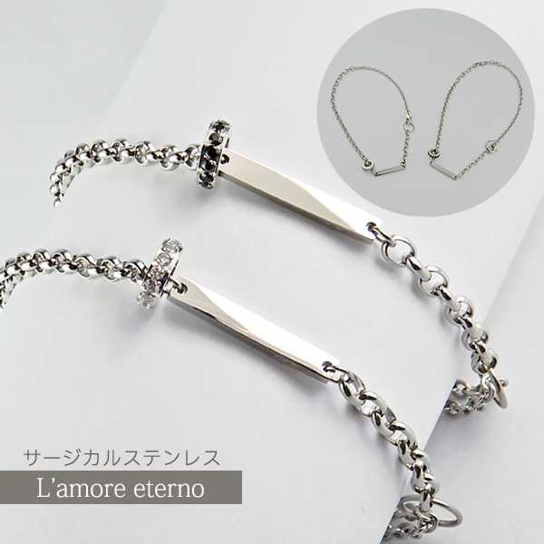 2way ペアブレスレット ペアアンクレット ジルコニア リング付き ステンレス サージカルステンレス 金属アレルギー対応 ホワイト ブラック メンズ レディース 2個セット プレゼント ギフト カップル お揃い さりげない