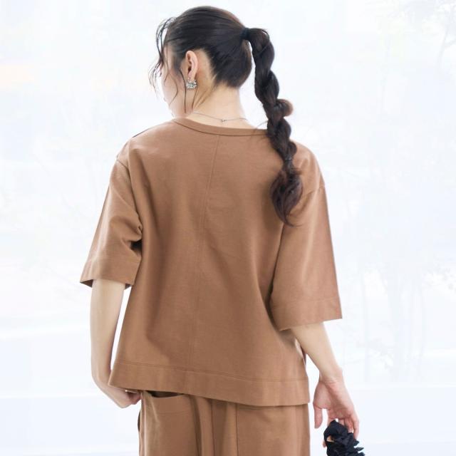 薄手ながらも、しっかりとした肉感のミニ裏毛カットソーを使用。