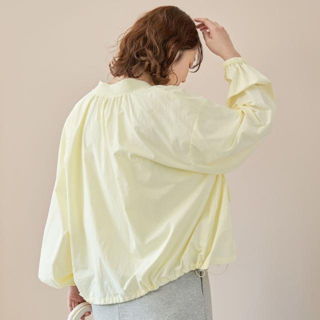 ベーシックなデザインに、襟元のギャザーでさりげない女性らしさをプラス。