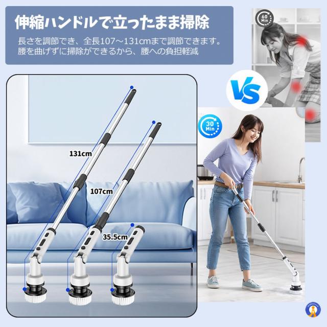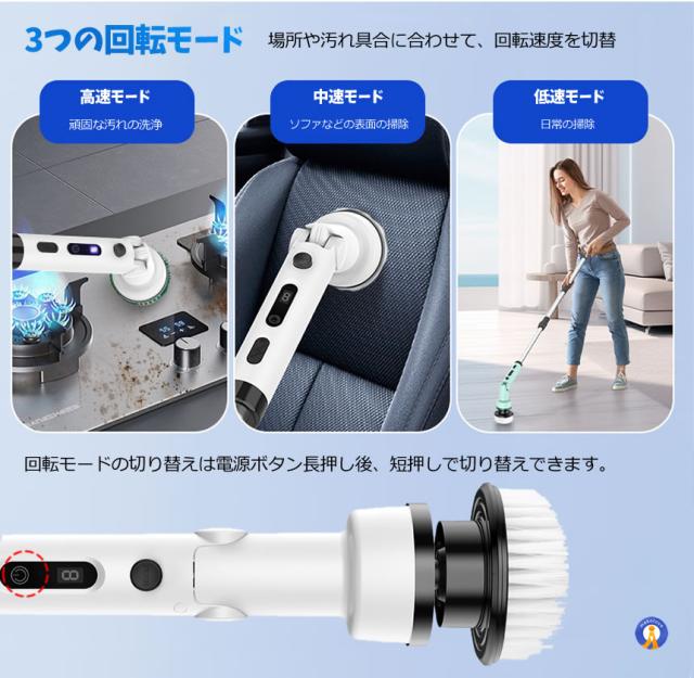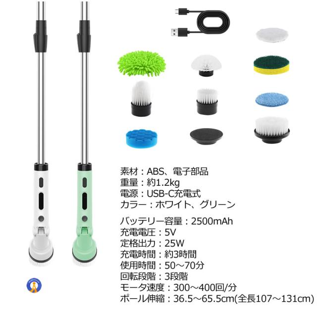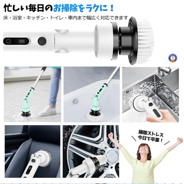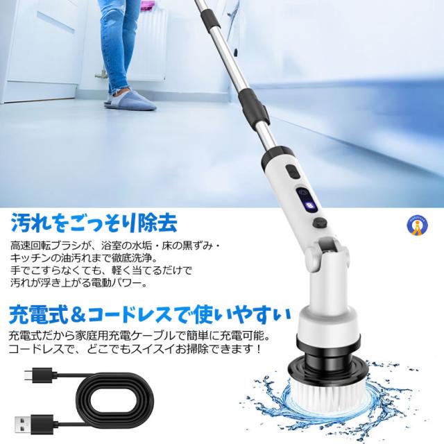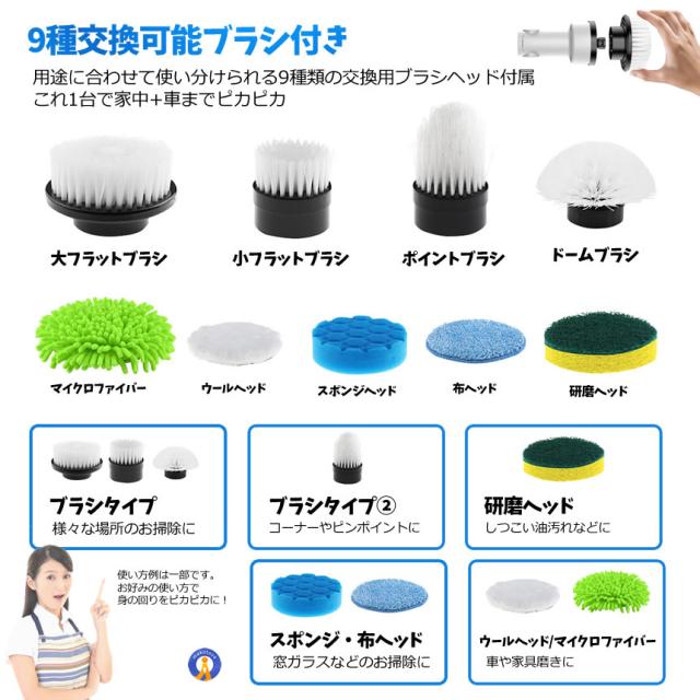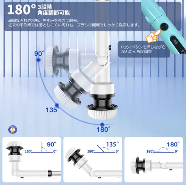 電動ブラシ 掃除 コードレス 180°回転 9種交換ヘッド付き 電動クリーニング ブラシ 充電式 キッチン シンク周り トイレ 狭い隙間 浴槽 床のタイル 180BURASHI