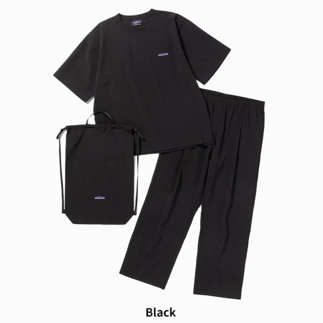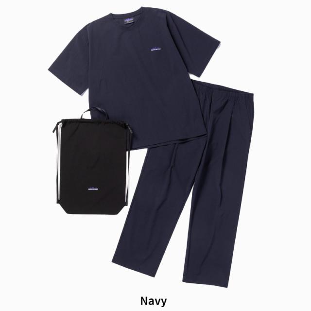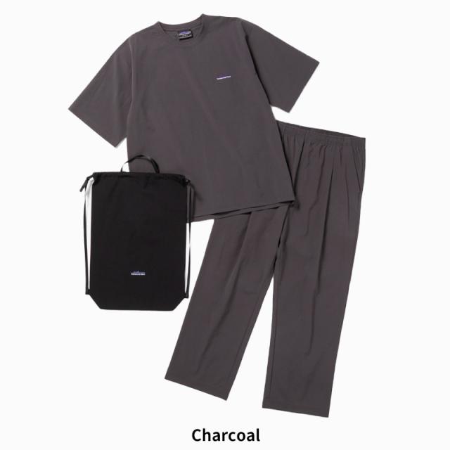 ゆとりのあるリラックスシルエットで、長時間の着用でもストレスフリーな着心地。 トップスは通気性と吸汗速乾性に優れ、胸元のロゴ刺繍がさりげないアクセント。