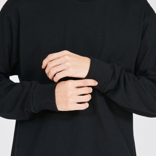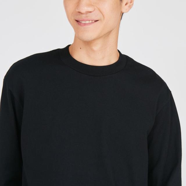 丸胴仕様とタグレスデザインで快適な着心地を実現。袖口はリブ仕様で、袖をたくし上げたスタイリングにも対応。