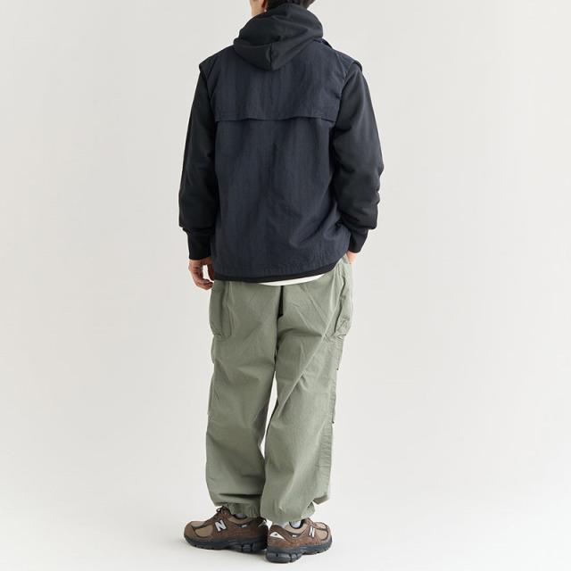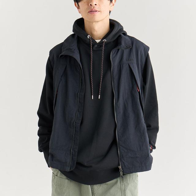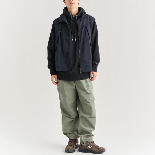耐摩耗性に優れたナイロンタッサー素材を採用し、擦れや引っかきに強くデイリーからアウトドアまで幅広く対応。軽量で扱いやすく、Tシャツやシャツ、フーディーとのレイヤードスタイルにも最適です。