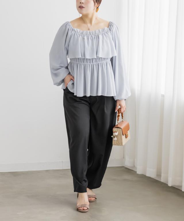 | 3Lサイズを着用してウエストはちょうどよくシルエットはしっかり広がりがあるので楽に着用できました。ゆとりがありつつすっきり見えるシルエットで、トップスとのバランスが取りやすいアイテムです。ワイドパンツだけどフェミニンなスタイルになれるので、可愛い系のトップスとも、シンプルなトップスとも相性がいいのでおすすめです。少しコクーンのシルエットが今っぽいです!オールシーズン使える便利な1枚です! |