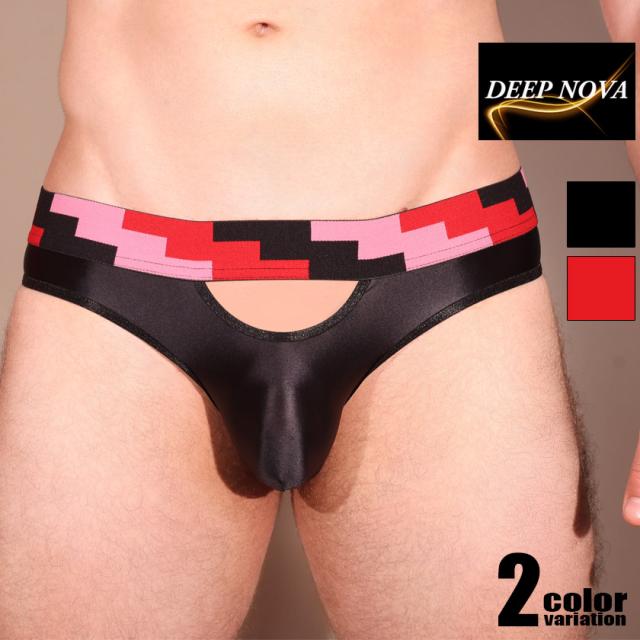 ビキニ メンズ DEEP NOVA/ディープノバ ピクセル風ウエストバンド 幾何学模様 フルバック ビキニ 立体縫製 男性下着 メンズ セクシー 光沢