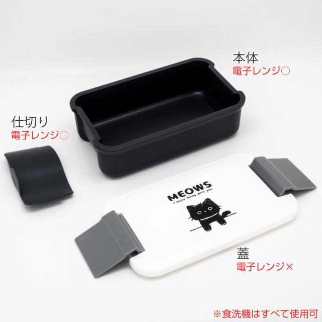 弁当箱 550ml ランチボックス 仕切付 ねこちゃん ( お弁当箱 食洗機対応 レンジ対応 一段 抗菌 防汚 日本製 食洗機OK レンジOK お弁当 弁当 パッキン一体型 仕切り付き 大人 )