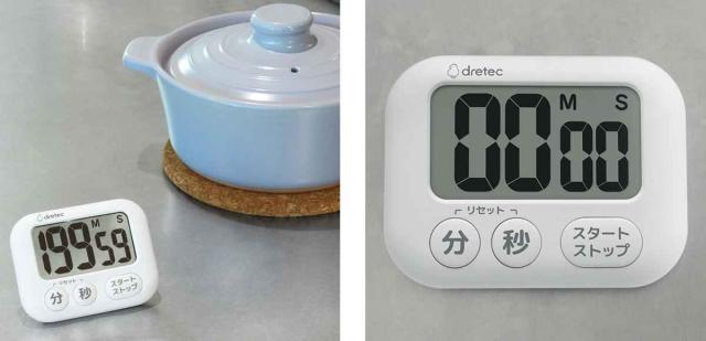 | 長時間設定が可能 最大199分59秒までの長時間設定が可能なため、煮込み料理やオーブン調理など時間のかかる調理にも最適です。 | 勉強やストレッチにも 設定した時間を繰り返し使えるリピート機能付きで、勉強や仕事、ストレッチなどの反復作業にも便利です。 |