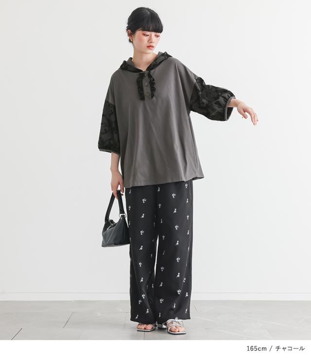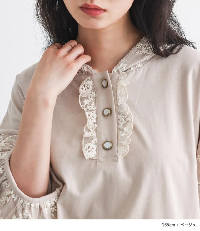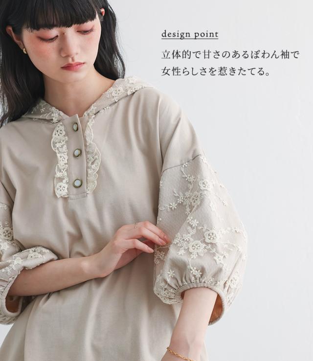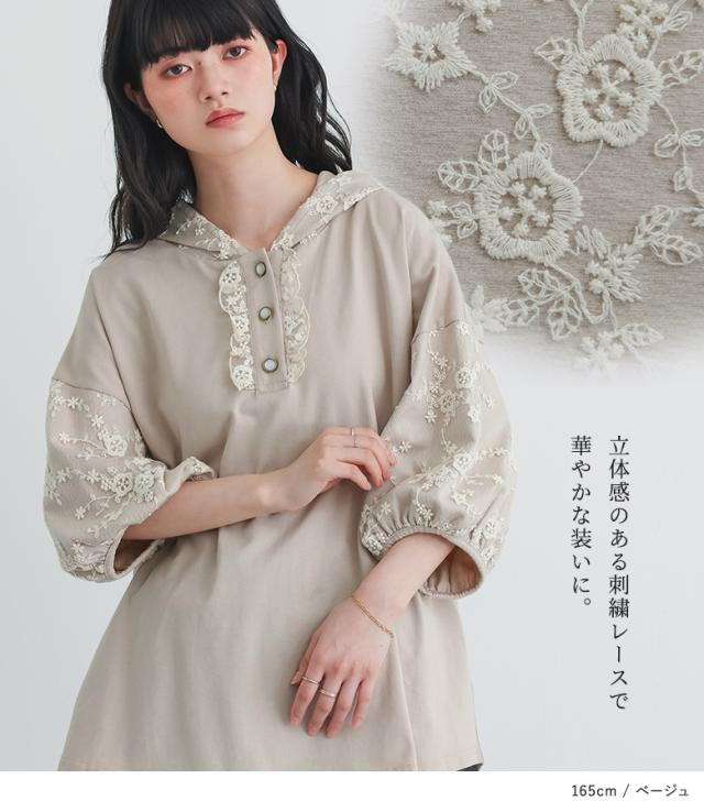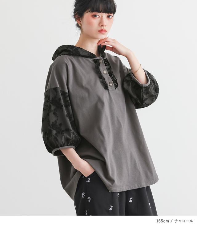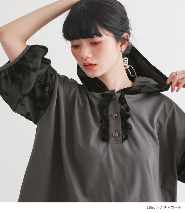 カットソー 半袖 レディース トップス 春 夏 Tシャツ フード付き 五分袖 フーディー チュール レース 異素材 フリル 綿100% プルオーバー 【TP】 チュニック パーカー ぽわん袖 ミディ丈 ミドル丈 チュニック丈 配色 無地 コットン100% レースチュール カジュアル レトロ クラシカル シンプル ナチュラル キレカジ フェミニン ガーリー ゆったり ゆる 楽ちん お尻が隠れる 二の腕カバー Sサイズ Mサイズ Lサイズ LLサイズ 3Lサイズ XLサイズ フリーサイズ ぽっちゃり 体型カバー 体形カバー 着痩せ 大きいサイズ プラスサイズ 10代 20代 30代 40代 50代 60代 低身長 高身長 女子会 オフィス 通勤 通学 お買い物 お出掛け 旅行 リゾート レジャー おしゃれ お洒落 トレンド 流行 somari imagination ソマリイマジネーション 可愛い系 大人女子 大人可愛い お洒落可愛い 大人カジュアル 上品 きれいめ osharewalker オシャレウォーカー おしゃれうぉーかー ベージュ グレー 灰色 チャコールグレー チャコール[ID]12tp051[somari imaginationレースフードプルオーバー]