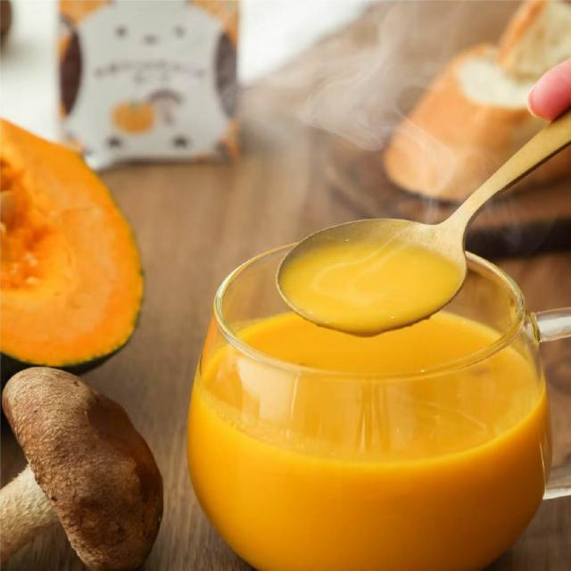 | 原材料名 | かぼちゃパウダー(かぼちゃ(北海道産))、かぼちゃフレーク(かぼちゃ(北海道産))、乳等を主要原料とする食品(乳糖、全粉乳、植物油脂、加糖脱脂練乳、デキストリン、その他)、砂糖、乾燥マッシュポテトパウダー、(馬鈴薯(北海道産))、バター加工品、椎茸エキスパウダー、チーズパウダー(ナチュラルチーズ(北海道産))、脱脂粉乳、マッシュルームエキスパウダー、食塩、チキンブイヨンパウダー、調味パウダー、粉末油脂、ソテーオニオンエキスパウダー、酵母エキス、うきみ(乾燥まいたけ)/増粘剤(加工デンプン、キサンタン)、調味料(アミノ酸等)、乳化剤、酸化防止剤(V.E)、pH調整剤、カゼインNa、香料、酸味料、(一部に乳成分・小麦・大豆・鶏肉・豚肉を含む) |