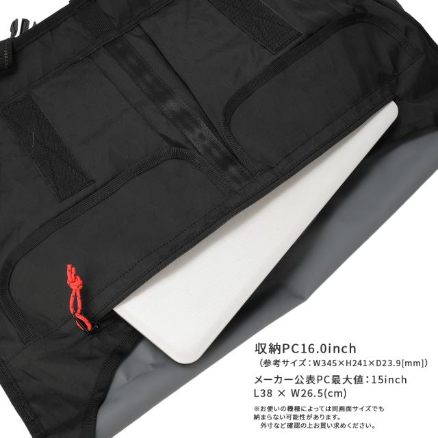 | ブランド |CHROME INDUSTRIES / クローム・インダストリーズ シリーズ |CTZ / シーティーゼット 品番 |BG380 形状 |CTZ 24L MESSENGER / シーティーゼット 24L メッセンジャー |メッセンジャーバッグ 外寸 |W580×H360×D165[mm] 重量 |約 1070g 収納サイズ |B4用紙 |16インチノートPC 容量 |約 24L 素材 |BLACK XRF | - Outer shell material | RecX Laminate | 210D RECYCLED NYLON | 1000D HT POLYESTER | POLYESTER 70D*190T TAFFETA | - Liner material | 210D Recycled Nylon with TPA laminated | 500D TPE Tarp 仕様 |バックル対象製品: | SEATBELT BUCKLE LG | ADJUSTER METAL BUCKLE LG |WATERPROOF PROPERTY(防水レベル): | -WEATHER PROOF | いかなる天候においても | 大切な荷物を守る防水性能を誇る 生産国 |ベトナム ATTENTION ●サイズはメーカー公称値(許容される最小値と最大値の中心値)です。 |