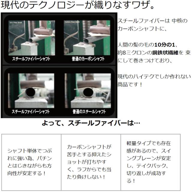 トゥルーテンパー社に認められた特約店のみ扱うことが許される、 スチールファイバー jシリーズ。 スチールファイバー最大のベストセラーiシリーズから、 より寛容性と飛距離性能を向上させたモデル。 世界中のプロツアーでも大きな成績を上げている。 |