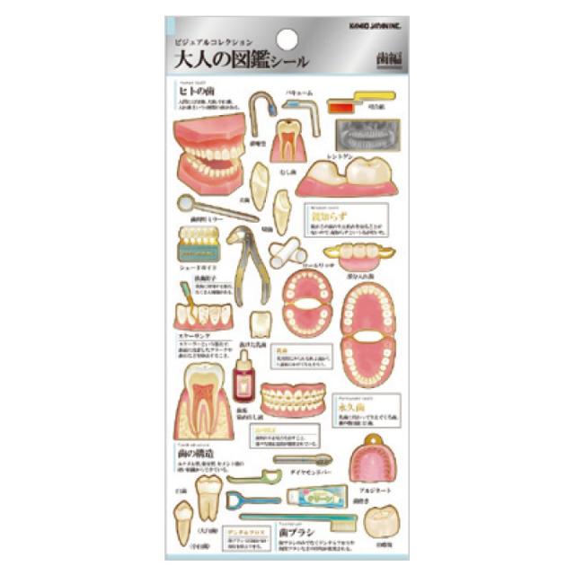 【メール便選択で送料無料】大人の図鑑シール 「歯」1枚 図鑑風 ビジュアルコレクション シール 歯編 ヒトの歯 日本製