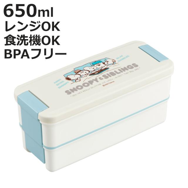 弁当箱 650ml ランチボックス二段 仕切付 ピーナッツ ( スヌーピー お弁当箱 ランチボックス 食洗機対応 レンジ対応 2段 抗菌 防汚 日本製 食洗機OK レンジOK お弁当 弁当 パッキン一体型 仕切り付き 大人 )