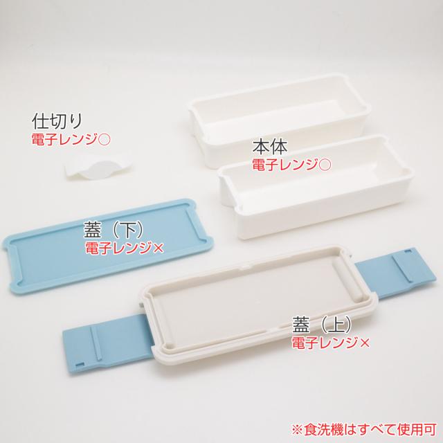 | 材質 | 本体(上)(下)・仕切り・蓋(上)・蓋(下): ポリプロピレン 止め具:ABS樹脂 蓋パッキン:オレフィン系熱可塑性エラストマー BPAフリー |