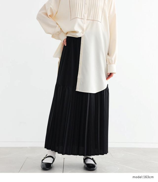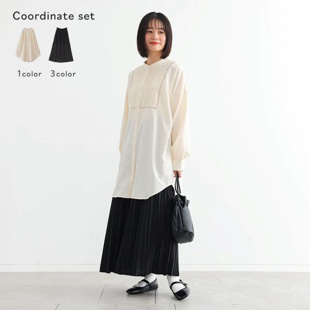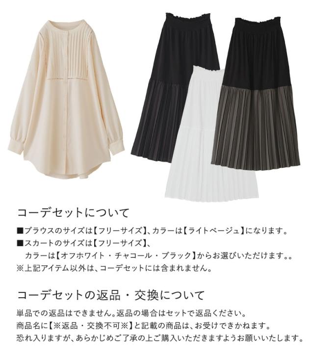 『プリーツペチコートスカート×ピンタックはしごレースブラウスコーデ2点SET』【メール便不可】【30】[2点コーデセット 2026 レディース ペチコート スカート ボトムス インナー ブラウス シャツ ロングシャツ]