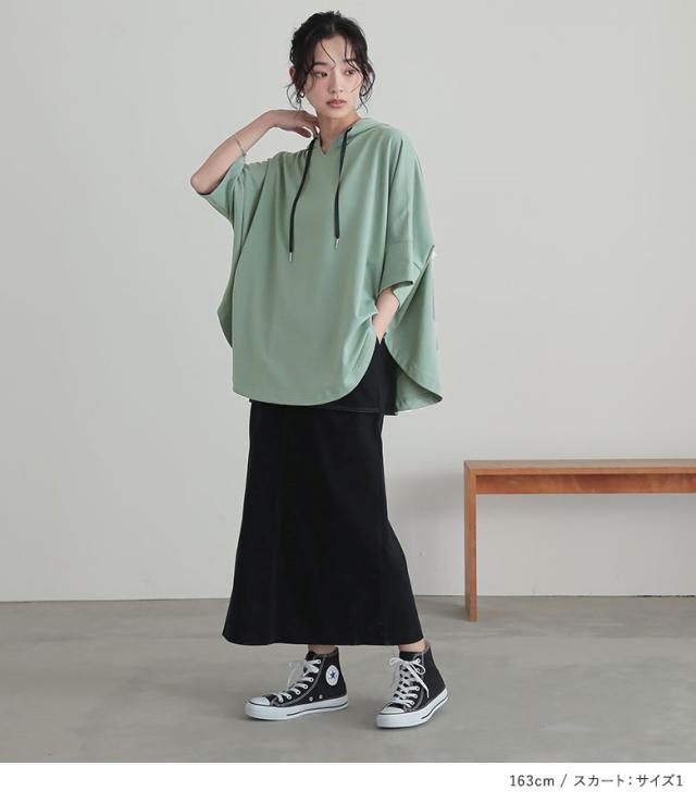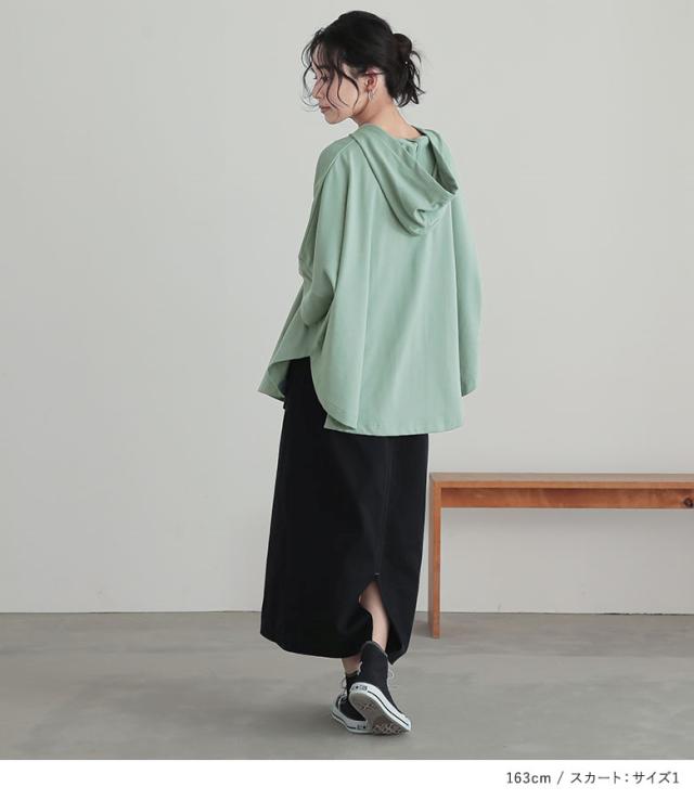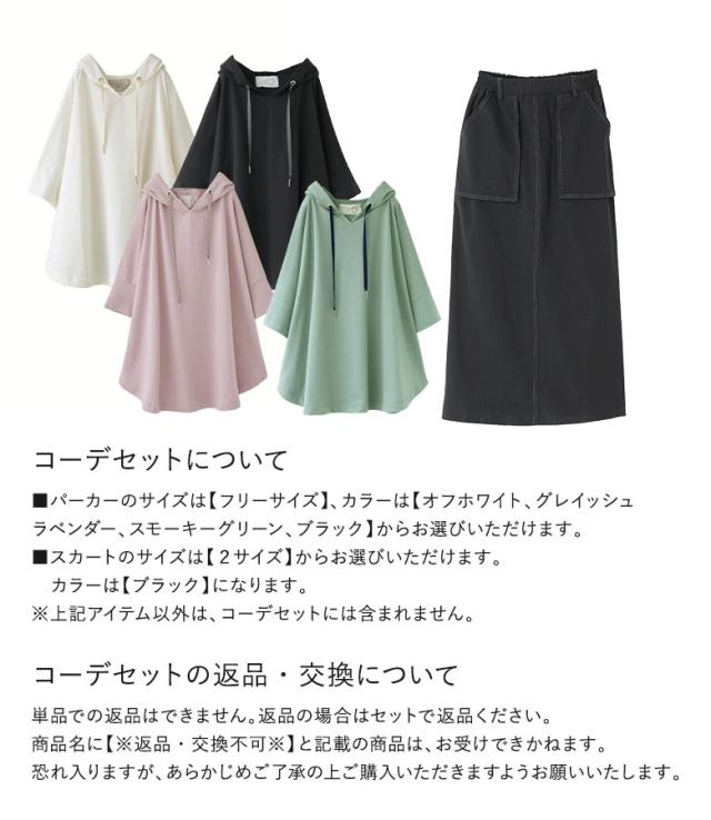 『裾ラウンドゆるパーカー×立体ポケットナロースカートコーデ2点SET』【メール便不可】【40】[2点コーデセット 2026 レディース トップス パーカー フーディー プルオーバー スカート ナロースカート ロング丈]