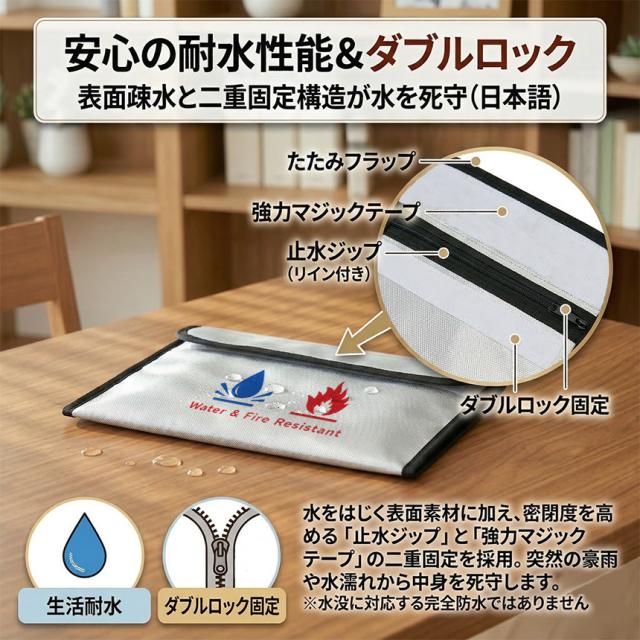 【火と水から大切な資産を守る、多層構造セーフティバッグ】
