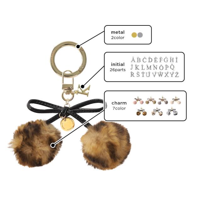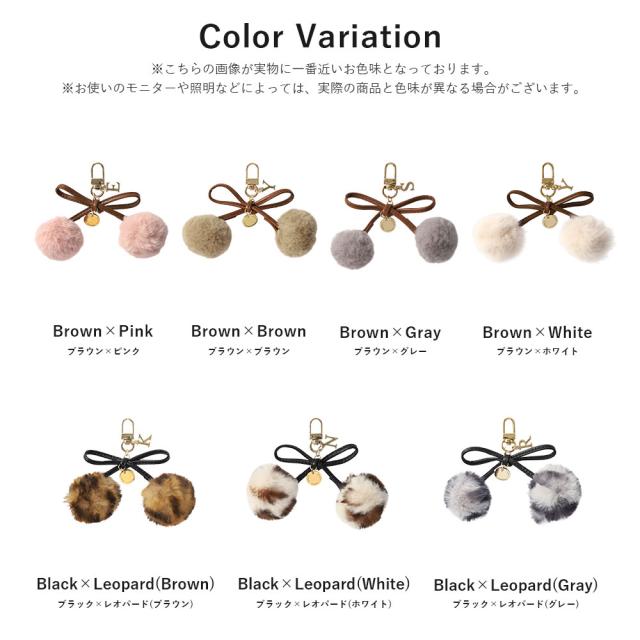 | ■本革のリボンにファーをあしらった可愛らしいチャーム リボンのような、さくらんぼのような、ゆらゆらと揺れるチャームがバッグやスマホケースに華やかさをプラスしてくれます。 ファーは7色から選択でき、さらにお好きなイニシャルもお選びいただけるので自分だけの特別なカスタマイズが楽しめます。 |