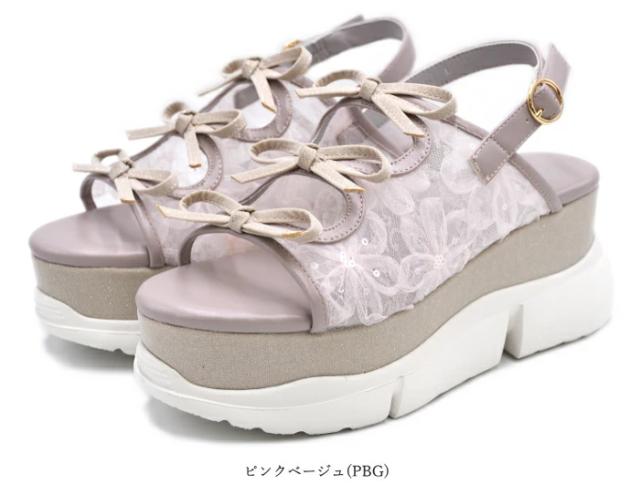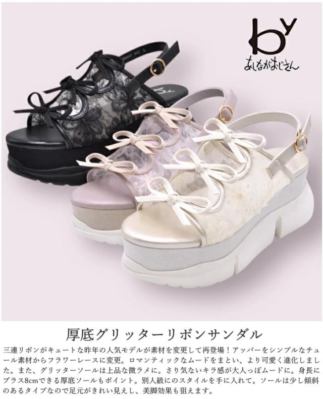 byあしながおじさん 厚底グリッターリボンサンダル 8990007 レディース 靴 春夏 新作 かわいい コーデ 厚底サンダル