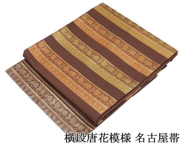 名古屋帯 新品 仕立て上がり 西陣 しおみ織物謹製 名物裂 横段 唐花 九寸名古屋帯 仕立済み h3193
