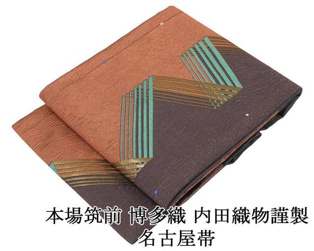名古屋帯 新品 仕立て上がり 本場筑前 博多織 内田織物謹製 幾何 九寸名古屋帯 仕立済み h3194