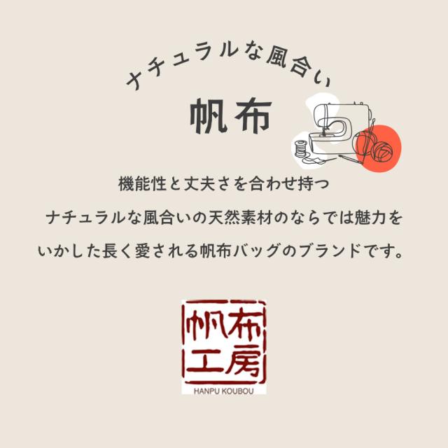 機能性と丈夫さを合わせ持ちナチュラルな風合いの素材ならではの魅力を生かした長く愛される帆布バッグのブランド、帆布工房の商品です。