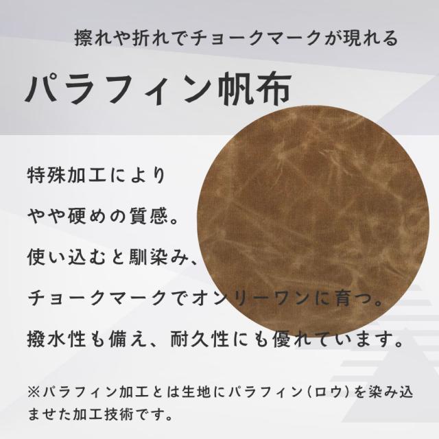 擦れや折れでチョークマークが現れるパラフィン加工を施してます。撥水性、耐久性に優れた素材で、オンリーワンに育っていきます。※表情の出方は商品によって異なりますのでご了承の上お買い求めください。