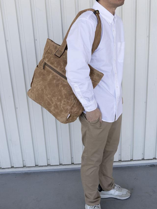 しっかりとした強度を保ちつつも軽く持ちやすい中厚手(10号程度)の帆布を使用しています。