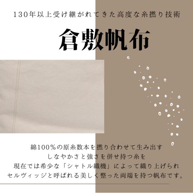| 素材 | 倉敷帆布10号(パラフィンバイオ加工)×イタリアンヌメ牛革 |