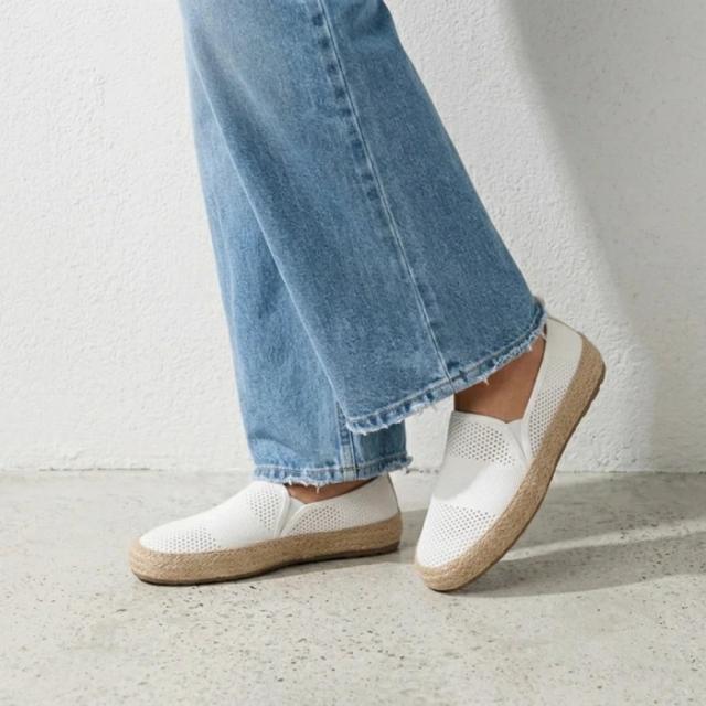 フットベッドは肌触りの良いマイクロスエードと衝撃を吸収するメモリーフォームの2層構造。まるで素足で柔らかなラグの上を歩いているような贅沢な感触に。 サイドにあしらわれたジュート素材が見た目にも涼しげなエスパドリーユらしい軽快さを際立たせます。