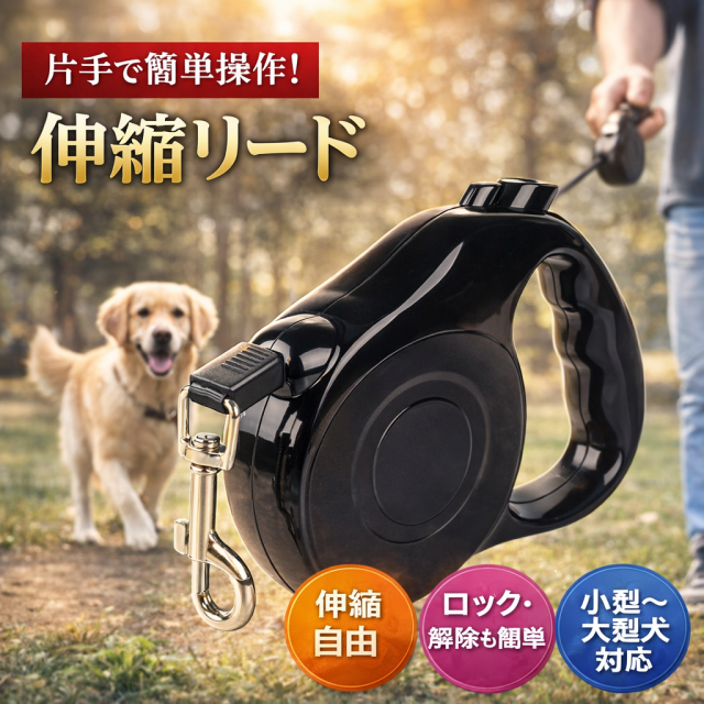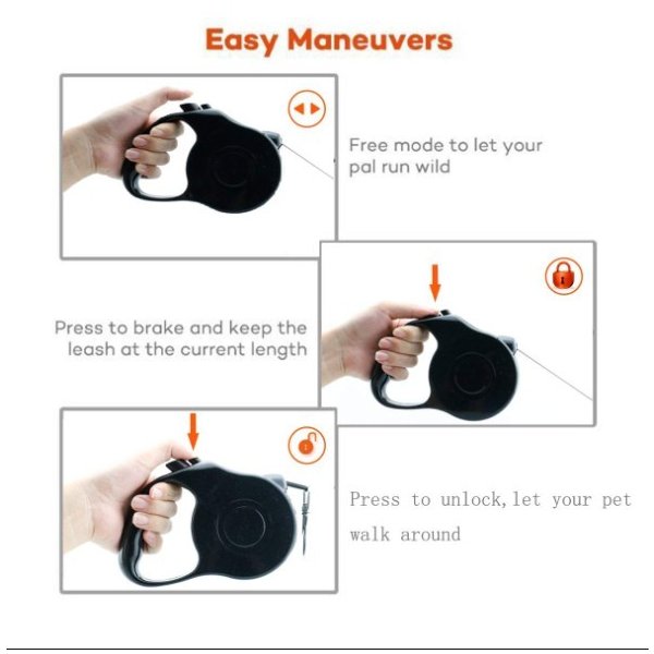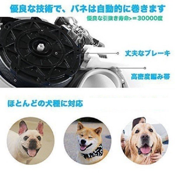 ワンタッチ操作 伸縮自在 ワンちゃんの動きに応じてリードを伸ばしたいとき、止めたいときにワンタッチの操作で長さを調節出来ます。