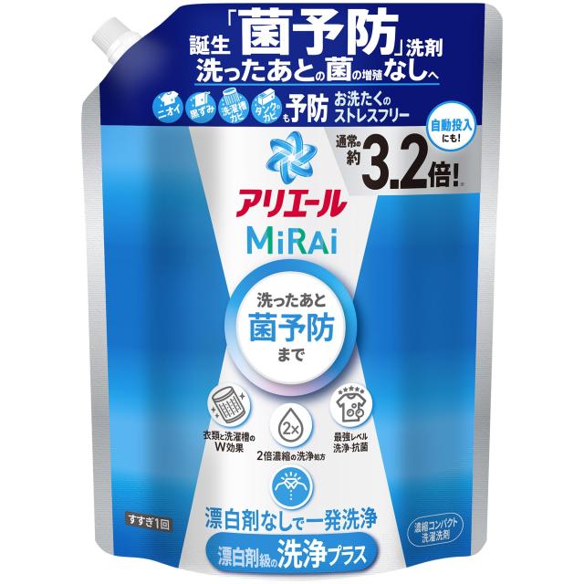 アリエール MiRAi 洗濯洗剤 濃縮 漂白剤級の洗浄プラス* 詰め替え 約3.2倍/920gタテ・ドラム式OK