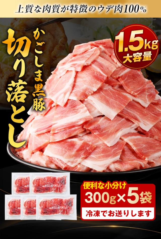 かごしま黒豚 切り落とし 1.5kg (300g×5) 豚肉 ウデ肉 大容量 徳用 鹿児島県産 国産 送料無料 黒豚 1kg以上 炒め物 豚丼 贈り物 お取り寄せ 高級 グルメ 土産 特産品 冷凍 旨さに 訳あり 小分け 薄切り [産直]