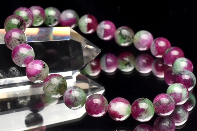 【1点物】鮮やか!ルビーたっぷり ルビーインゾイサイトシリカ 8.5mm ブレスレット 恋愛運・金運・仕事運_U9697