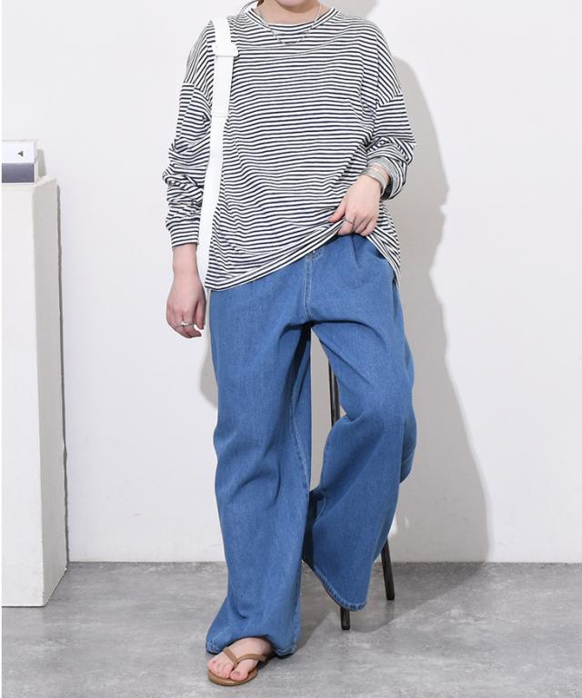 サラッと着心地の良いボーダー柄カットソー