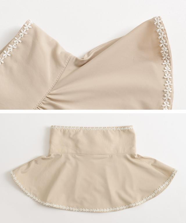 新作 保冷剤ポケット付き接触冷感UVカット抗菌防臭パイピング小花レースネックカバー レディース 付け襟 つけ襟 インナー 重ね着 レイヤード ハイネック ネックガード 涼しい ひんやり 首 暑さ対策 紫外線対策